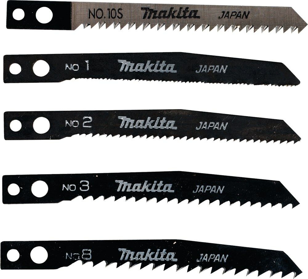De Makita decoupeerzaagbladenset is een essentiële toevoeging aan je gereedschapskist voor nauwkeurig en effectief zagen. Deze set bevat vijf verschillende bladen (NO1, NO2, NO3, NO8, NO10S), elk ontworpen voor specifieke zaagtaken. Of je nu hout, metaal of kunststof moet zagen, deze veelzijdige