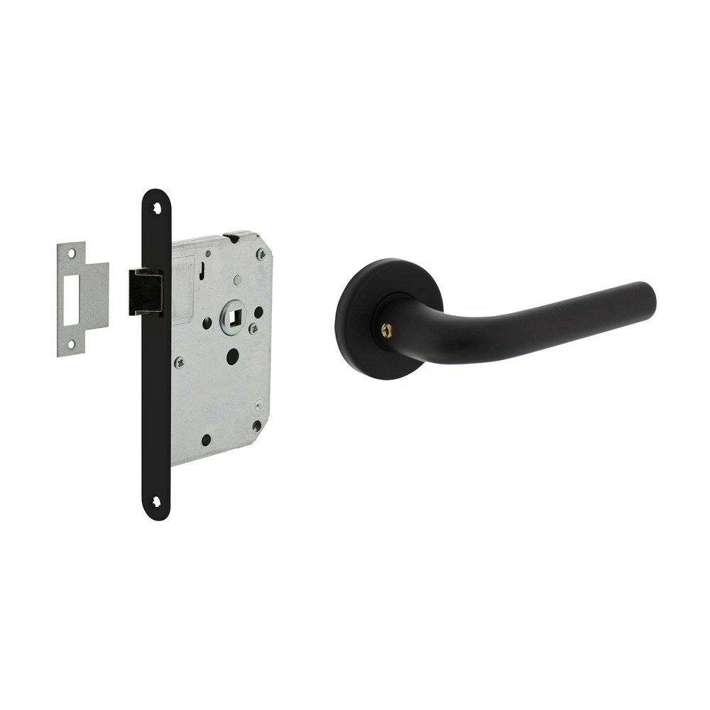 Deze deurbeslag set voor toilet-/badkamerdeuren bestaat uit een wc-slot met een bijpassende deurkruk en wc-sluiting. Het slot wordt geleverd in toilet-/badkamer uitvoering op 63 mm en met een 8 mm stift. De doornmaat van dit slot is 50 mm en wordt geleverd inclusief sluitplaat en witte voorplaat. U