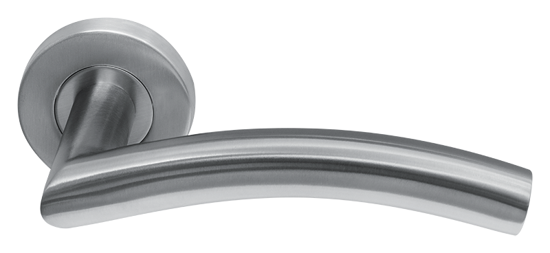 Deurklink Duo rvs basis op rond rozet geveerd