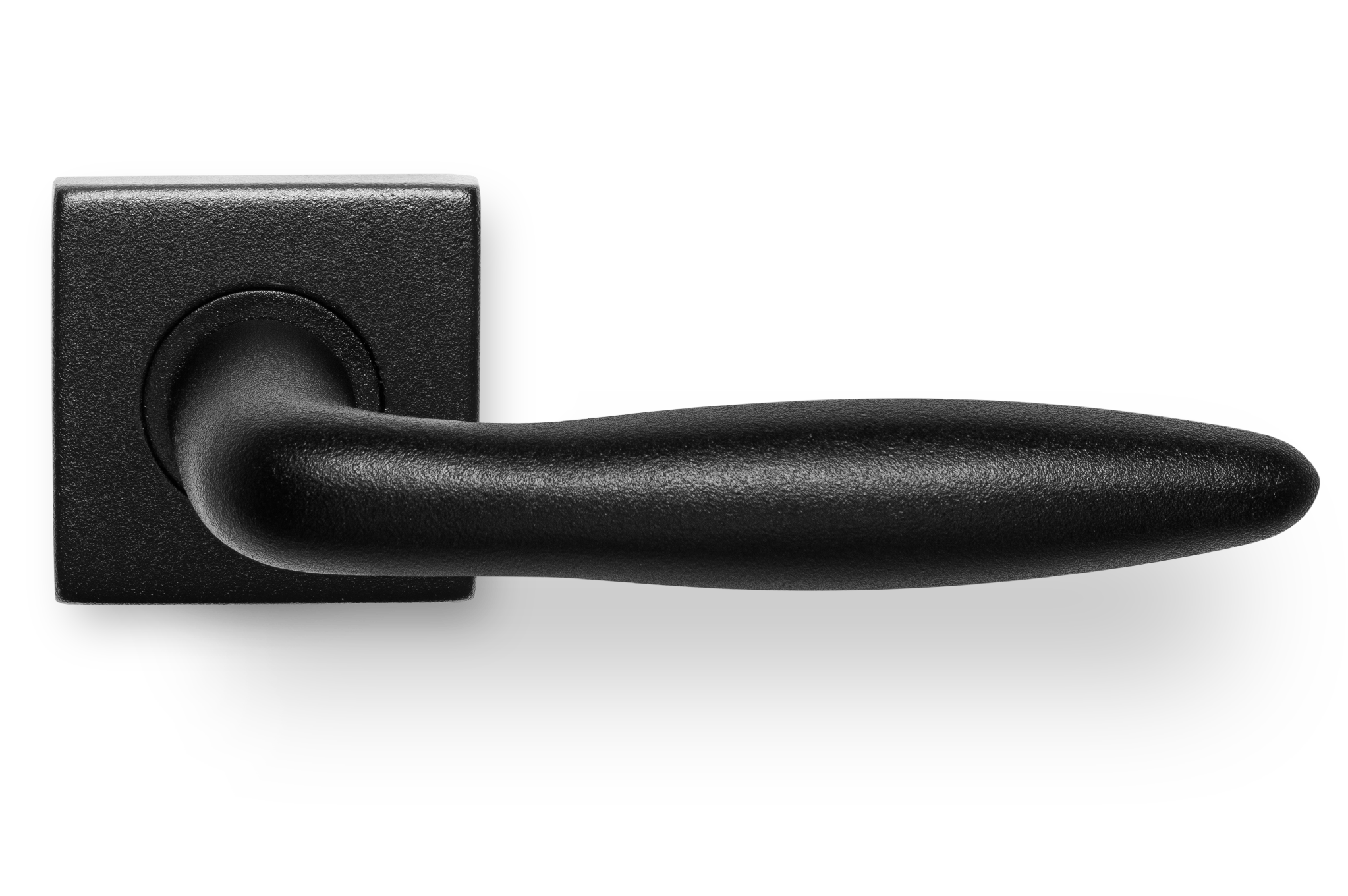 Deurklink Luno zwart basis op rond rozet geveerd