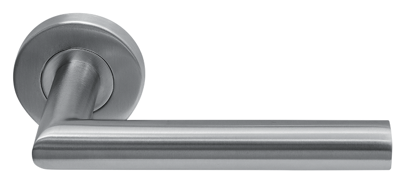 Deurklink Uno rvs basis op rond rozet geveerd