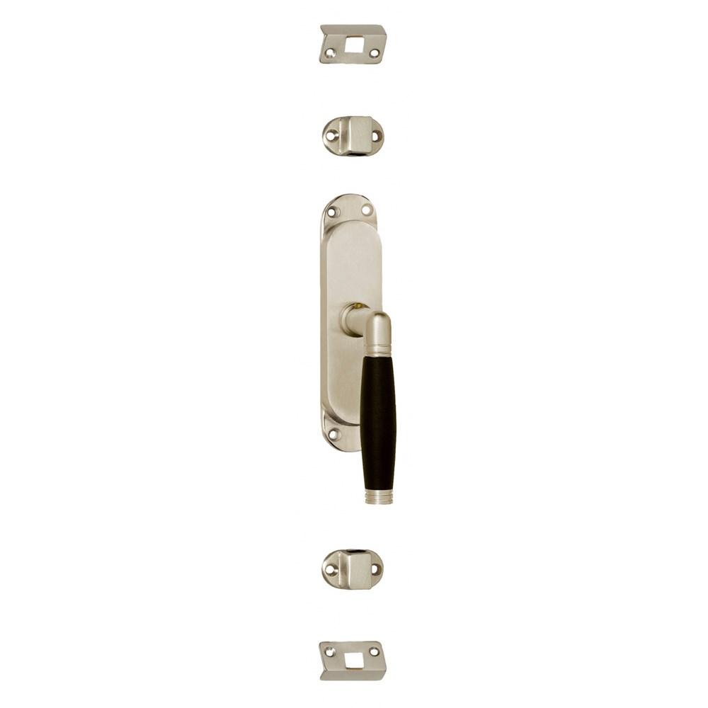 De Intersteel Kruk-espagnolet rechts Ton 222 nikkel mat/ebbenhout is een stijlvolle en functionele toevoeging voor je ramen, ideaal voor het beveiligen met een meerpuntssluiting. Deze espagnolet maakt het mogelijk om met één enkele handeling je raam aan zowel de boven- als onderzijde te