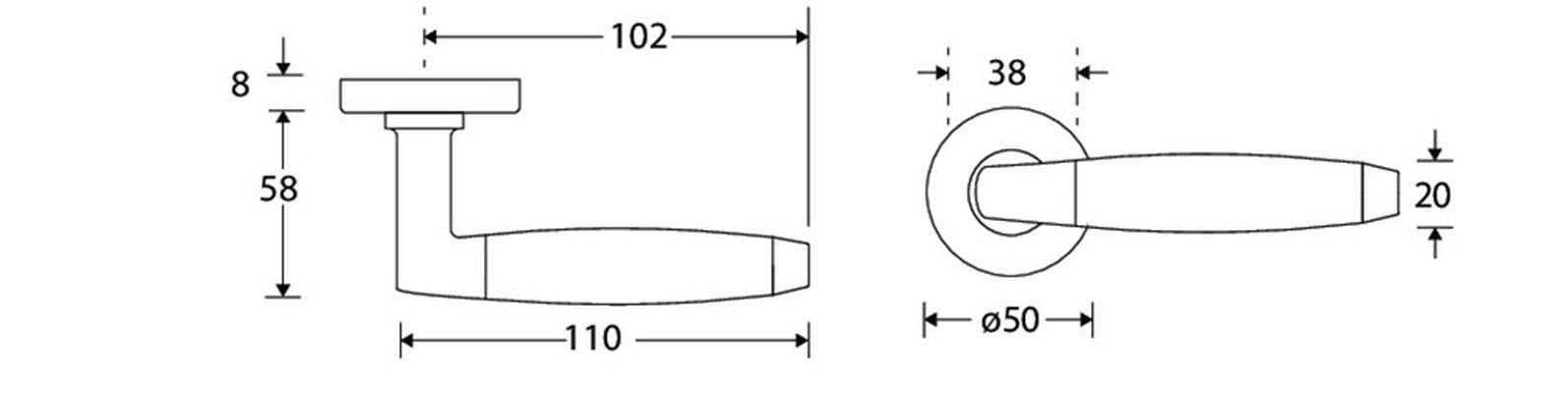- Type product: Deurkruk op rozet. Het krukrozet is geveerd (voorkomt hangende deurkrukken) en de schroefbevestiging op de