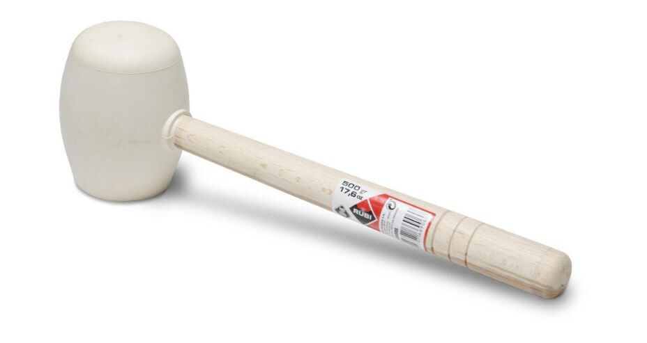 De RUBI rubberhamer is een van gebruikte hamers door de tegelzetters.