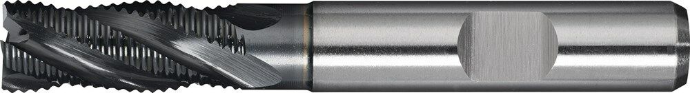 De Tecwerk HSS-Co PM schachtfrees met ALCRONA-coating is een hoogwaardig gereedschap ontworpen voor precisie frezen in materialen tot ongeveer 1400 N/mm² vastheid. Deze viersnijder, uitgerust met een cilinderschacht met meeneemvlak, biedt verbeterde stijfheid en efficiëntie dankzij de conische