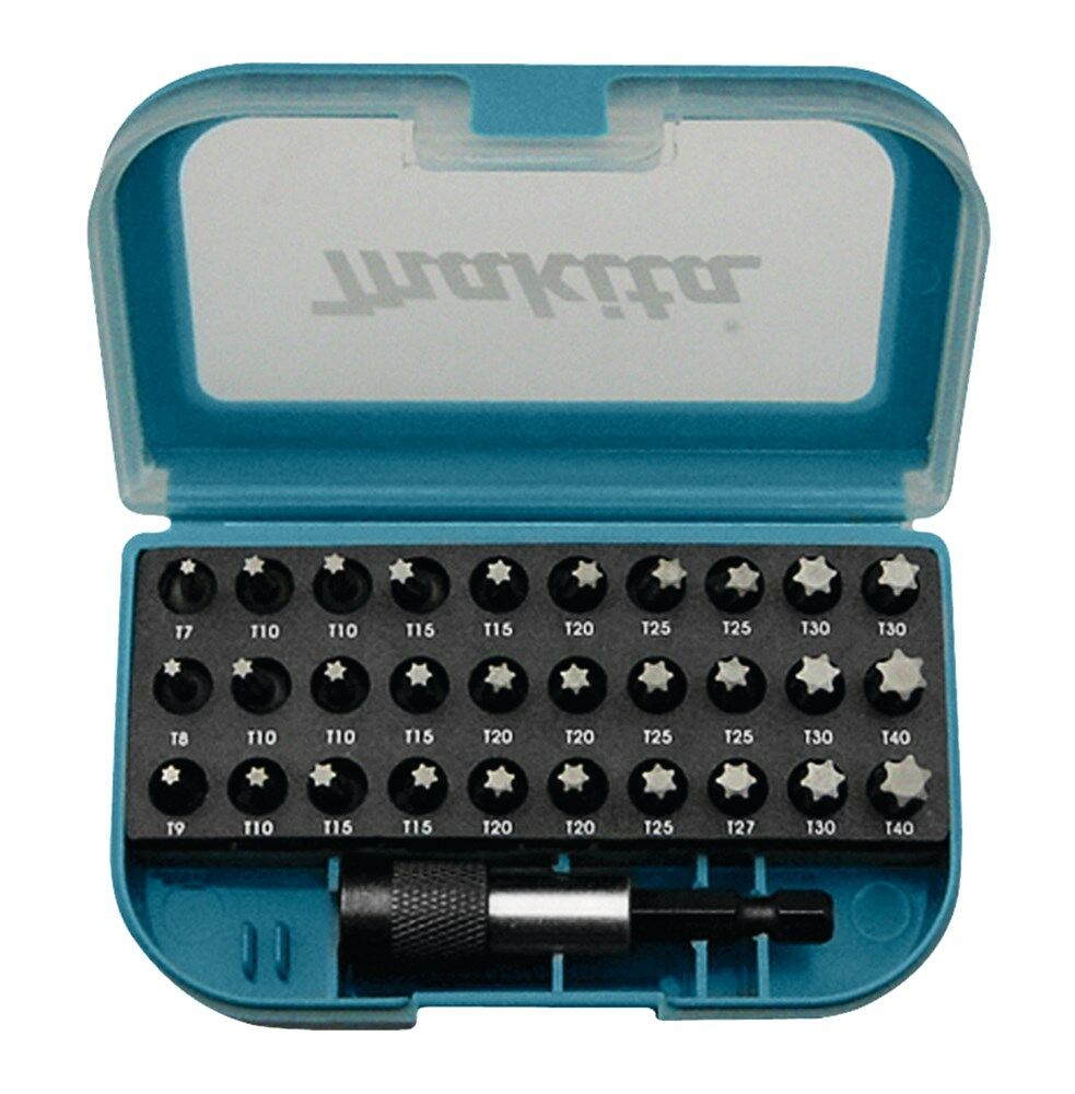 31-delige bitset in kunststof box met riemclip. Diverse passingen Torx inclusief magnetische bithouder. Passend op Makita Model: 6271DWAE , 6281DWAE , BDF343SHE , BDF445RHE , BDF448RFJ , BDF448ZJ , BDF453RHE , BDF459RFJ , BDF459ZJ , BHP448RFJ , BHP448ZJ , BHP459RFJ , BHP459ZJ , CLX209SAJ , DDF343RYE